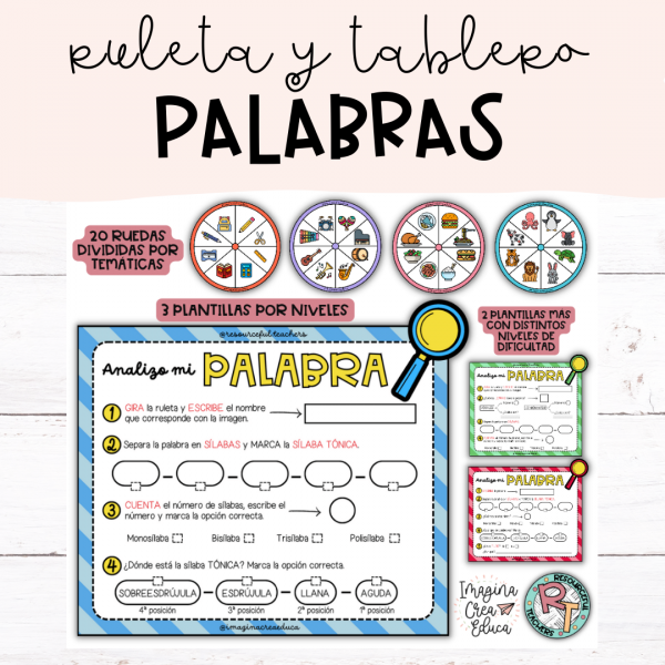 - 3 plantillas para analizar palabras divididas por niveles de dificultad.
